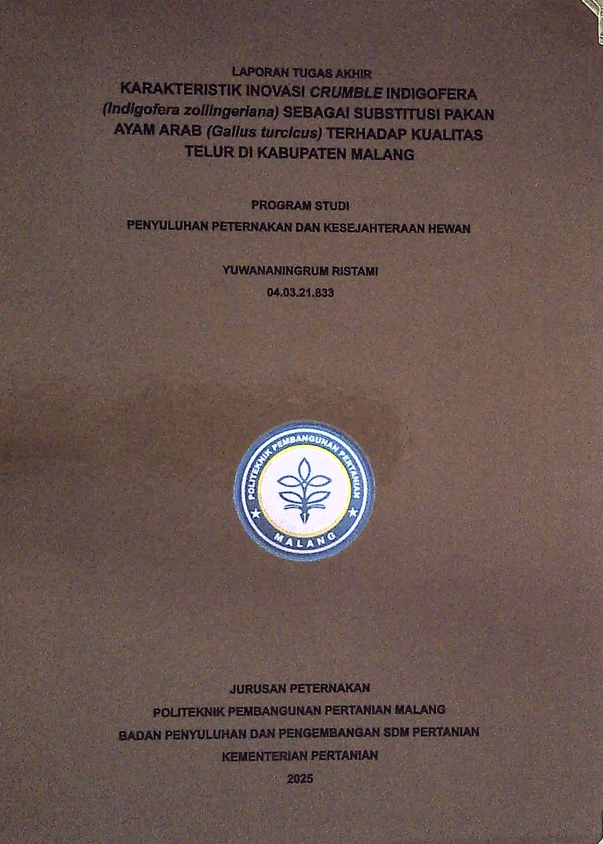 KARAKTERISTIK INOVASI CRUMBLE INDIGOFERA (Indigofera zollingeriana) SEBAGAI SUBSTITUSI PAKAN AYAM AR....