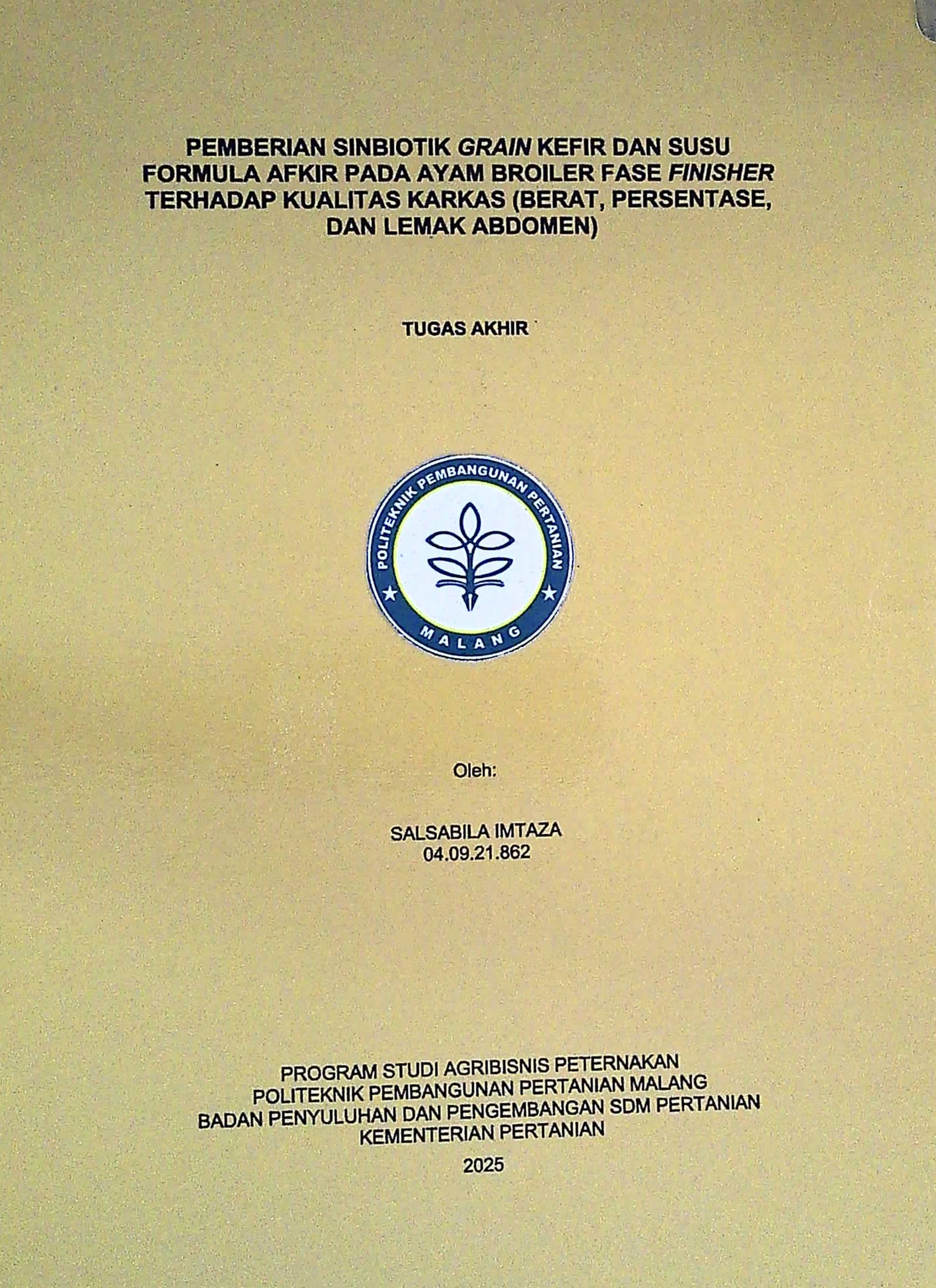 PEMBERIAN SINBIOTIK GRAIN KEFIR DAN SUSU FORMULA AFKIR PADA AYAM BROILER FASE FINISHER TERHADAP KUAL....