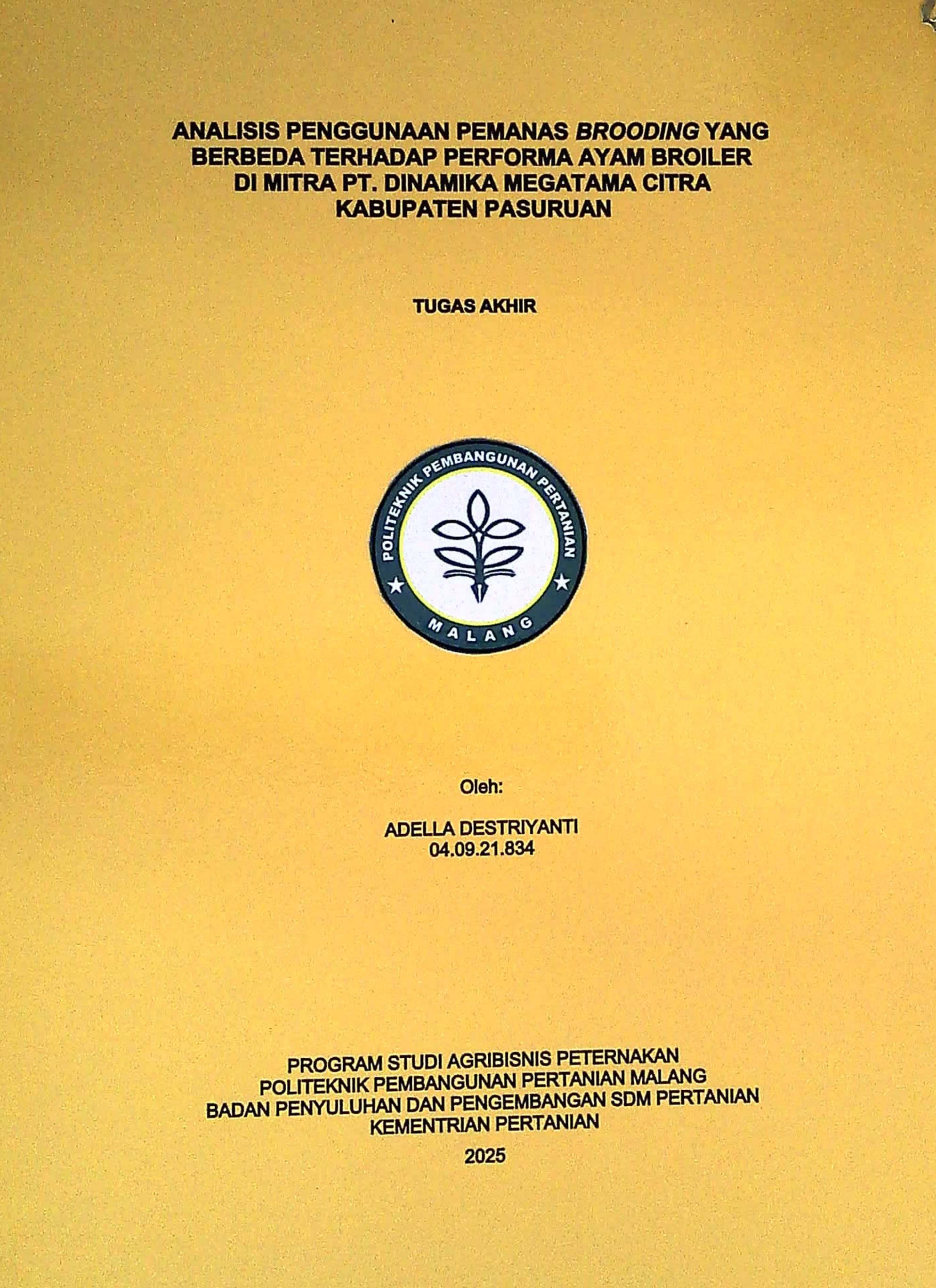ANALISIS PENGGUNAAN PEMANAS BROODING YANG BERBEDA TERHADAP PERFORMA AYAM BROILER DI PT. MITRA DINAMI....