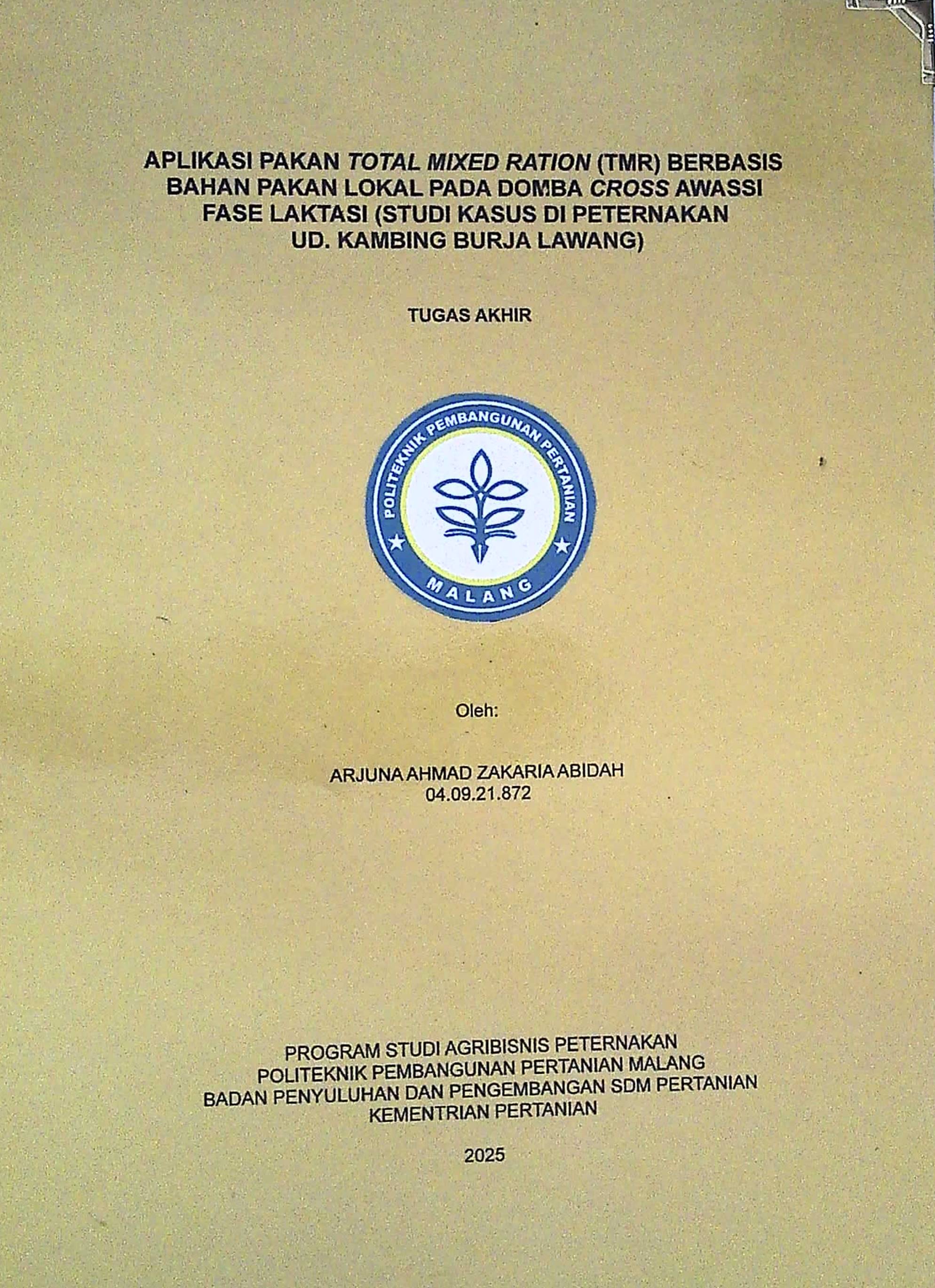 APLIKASI PAKAN TOTAL MIXED RATION (TMR) BERBASIS BAHAN PAKAN LOKAL PADA DOMBA CROSS AWASSI FASE LAKT....