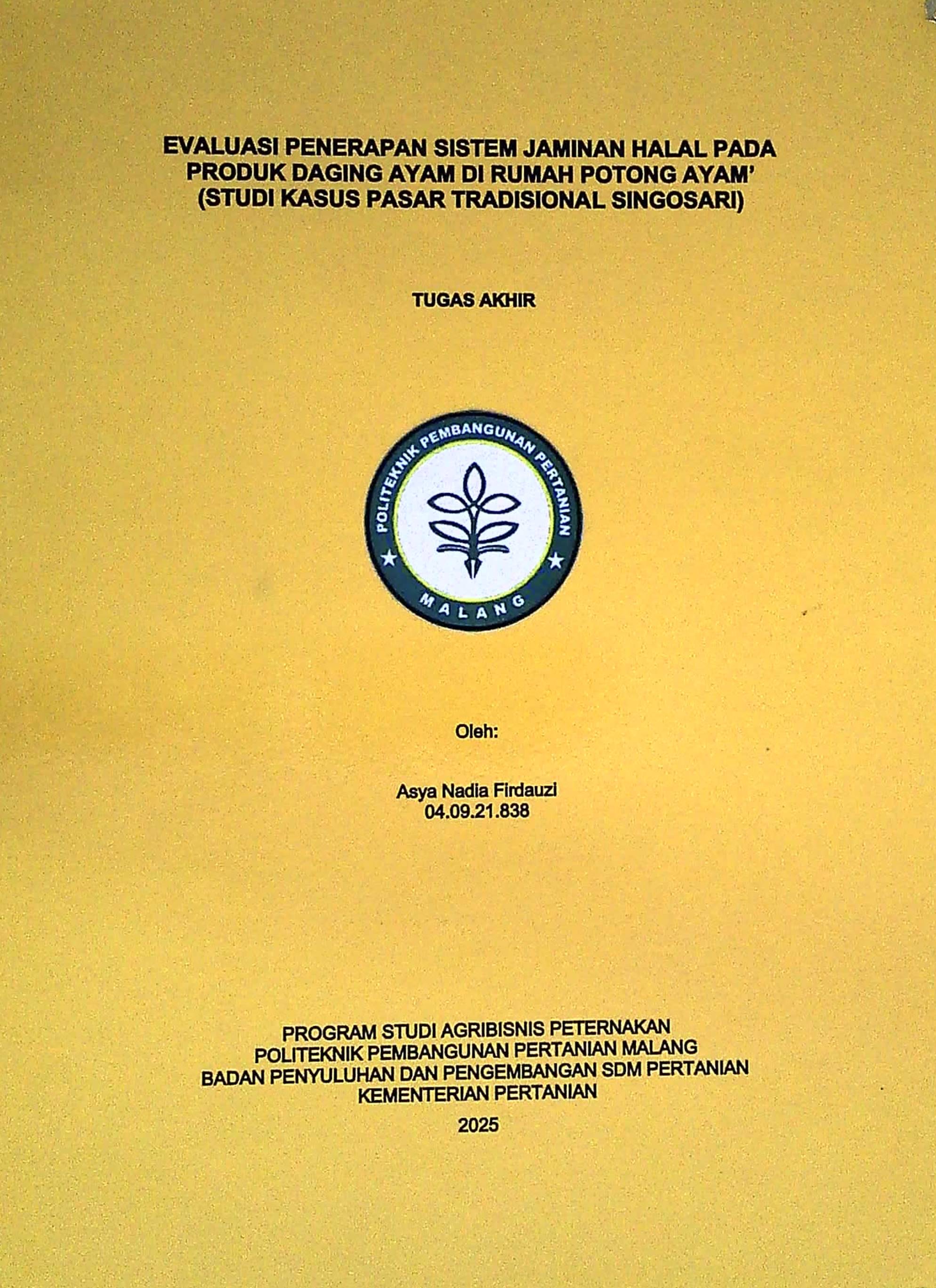 EVALUASI PENERAPAN SISTEM JAMINAN HALAL PRODUK DAGING AYAM DI RUMAH POTONG AYAM’ : (STUDI KASUS P....