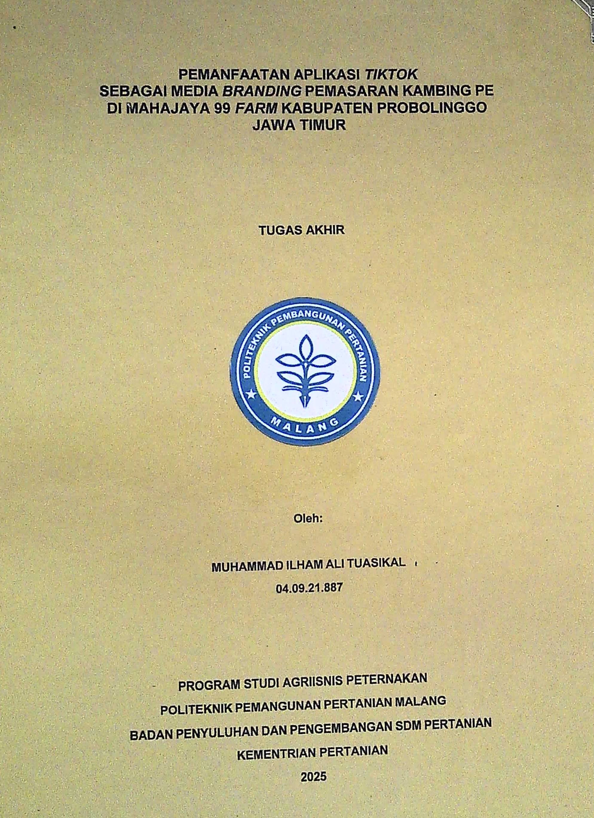PEMANFAATAN APLIKASI TIKTOK SEBAGAI MEDIA BRANDING PEMASARAN KAMBING PE DI MAHAJAYA 99 FARM KABUP....