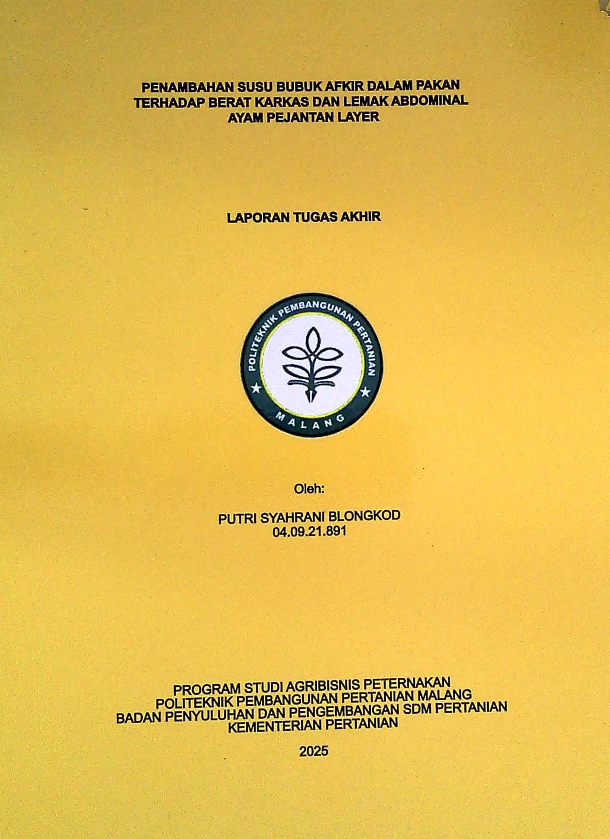 PENAMBAHAN SUSU BUBUK AFKIR DALAM PAKAN TERHADAP BERAT KARKAS DAN LEMAK ABDOMINAL AYAM PEJANTAN LAYE....
