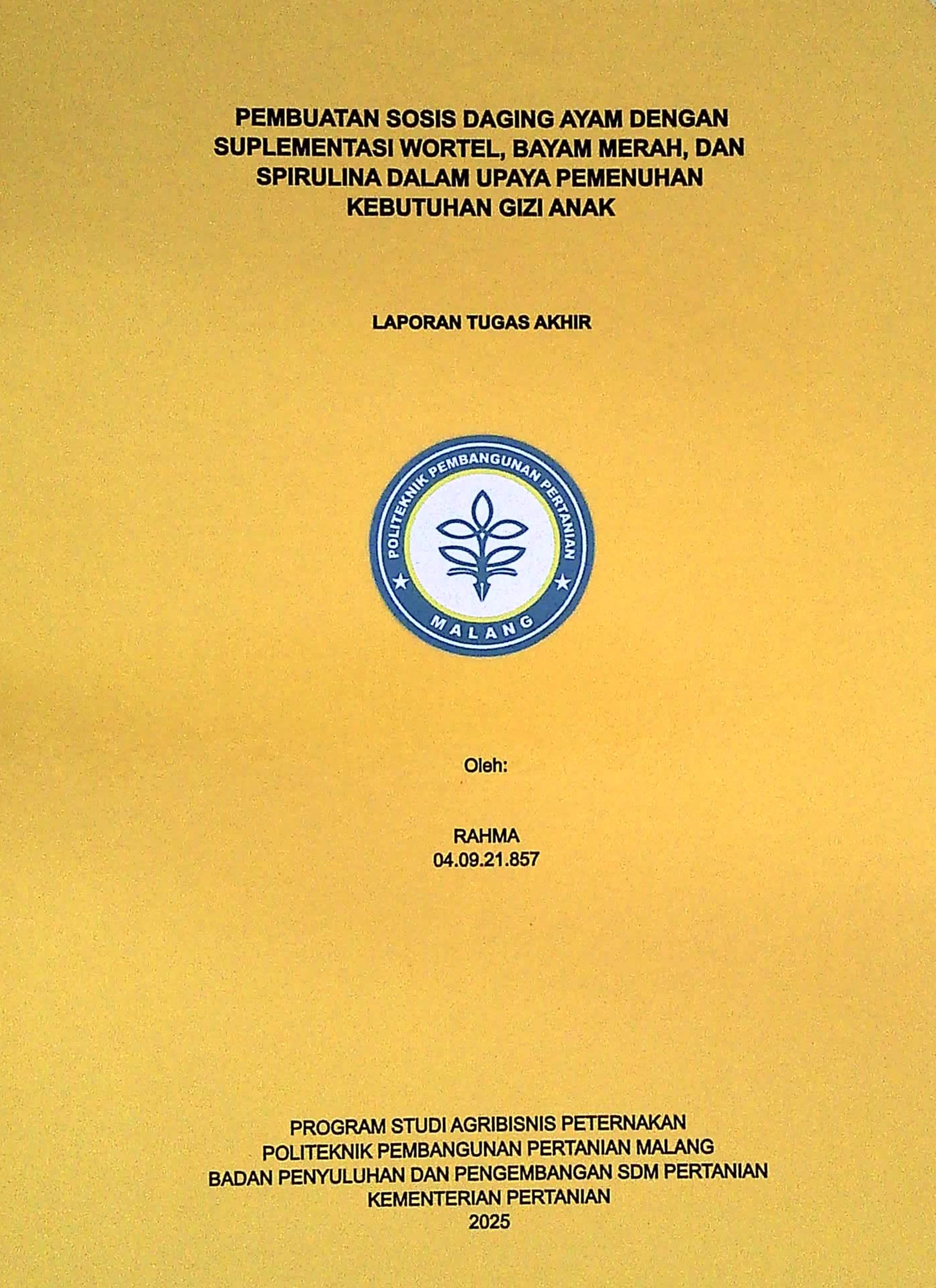PEMBUATAN SOSIS DAGING AYAM DENGAN SUPLEMENTASI WORTEL, BAYAM MERAH, DAN SPIRULINA DALAM UPAYA PEMEN....