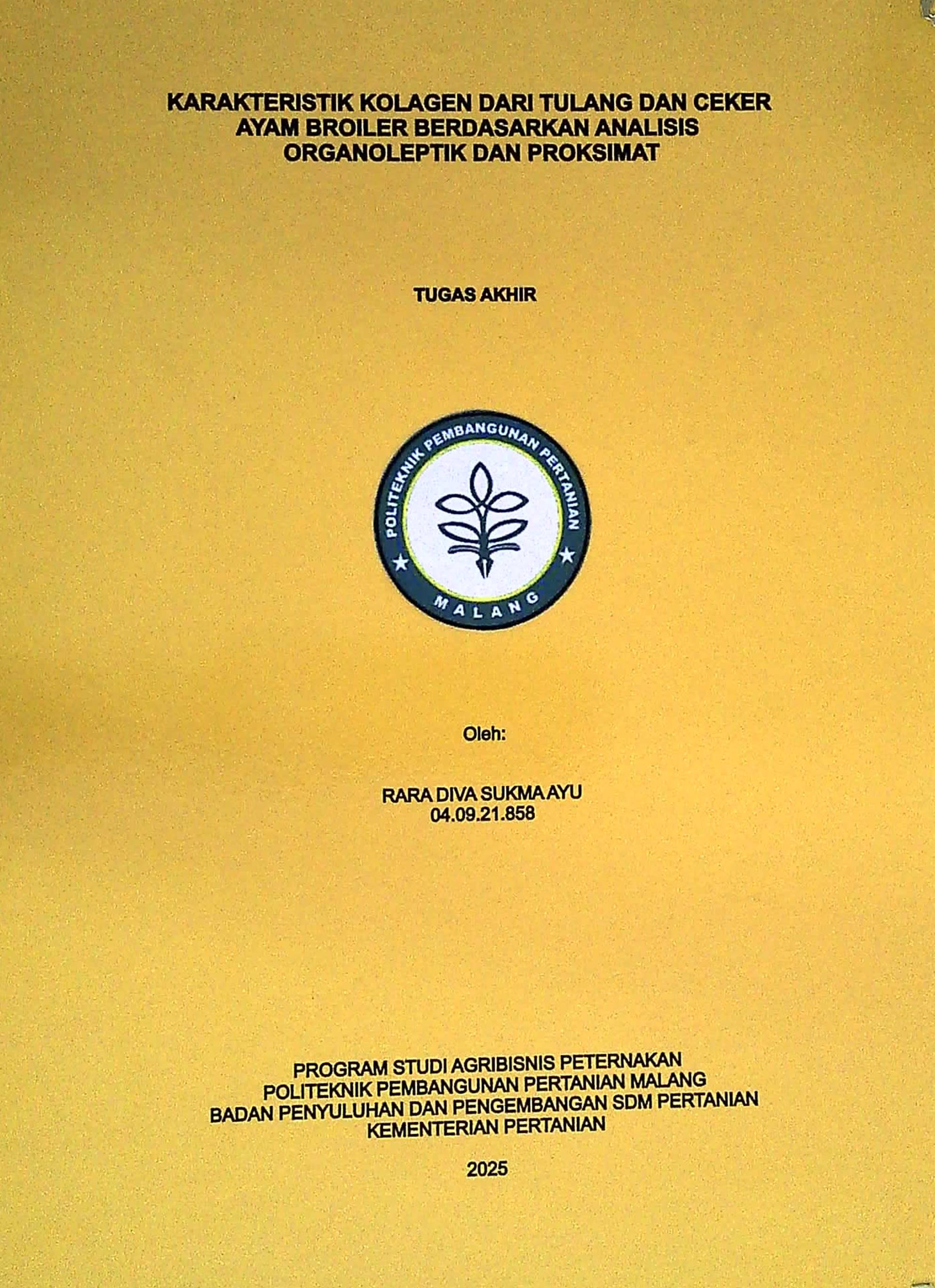 KARAKTERISTIK KOLAGEN DARI TULANG DAN CEKER AYAM BROILER BERDASARKAN ANALISIS ORGANOLEPTIK DAN PROKS....