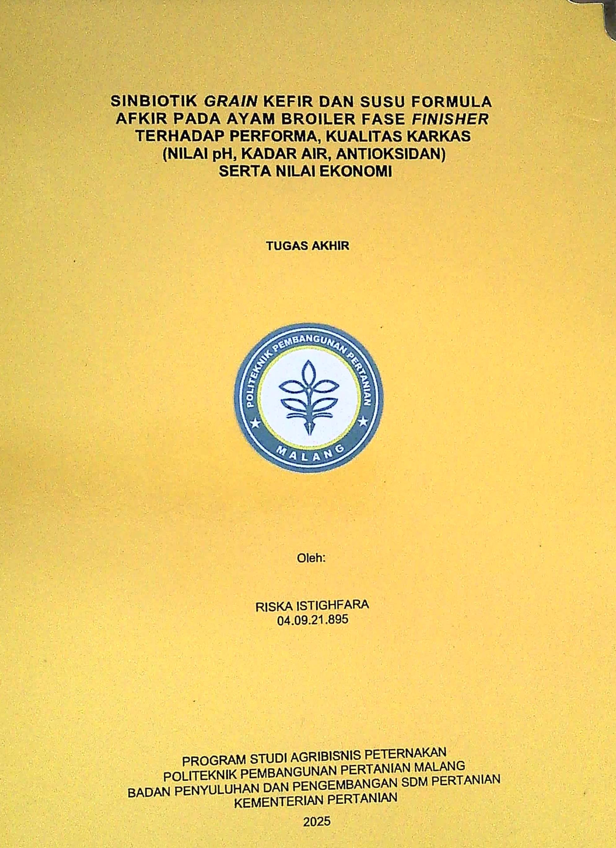 SINBIOTIK GRAIN KEFIR DAN SUSU FORMULA AFKIR PADA AYAM BROILER FASE FINISHER TERHADAP PERFORMA, KUAL....