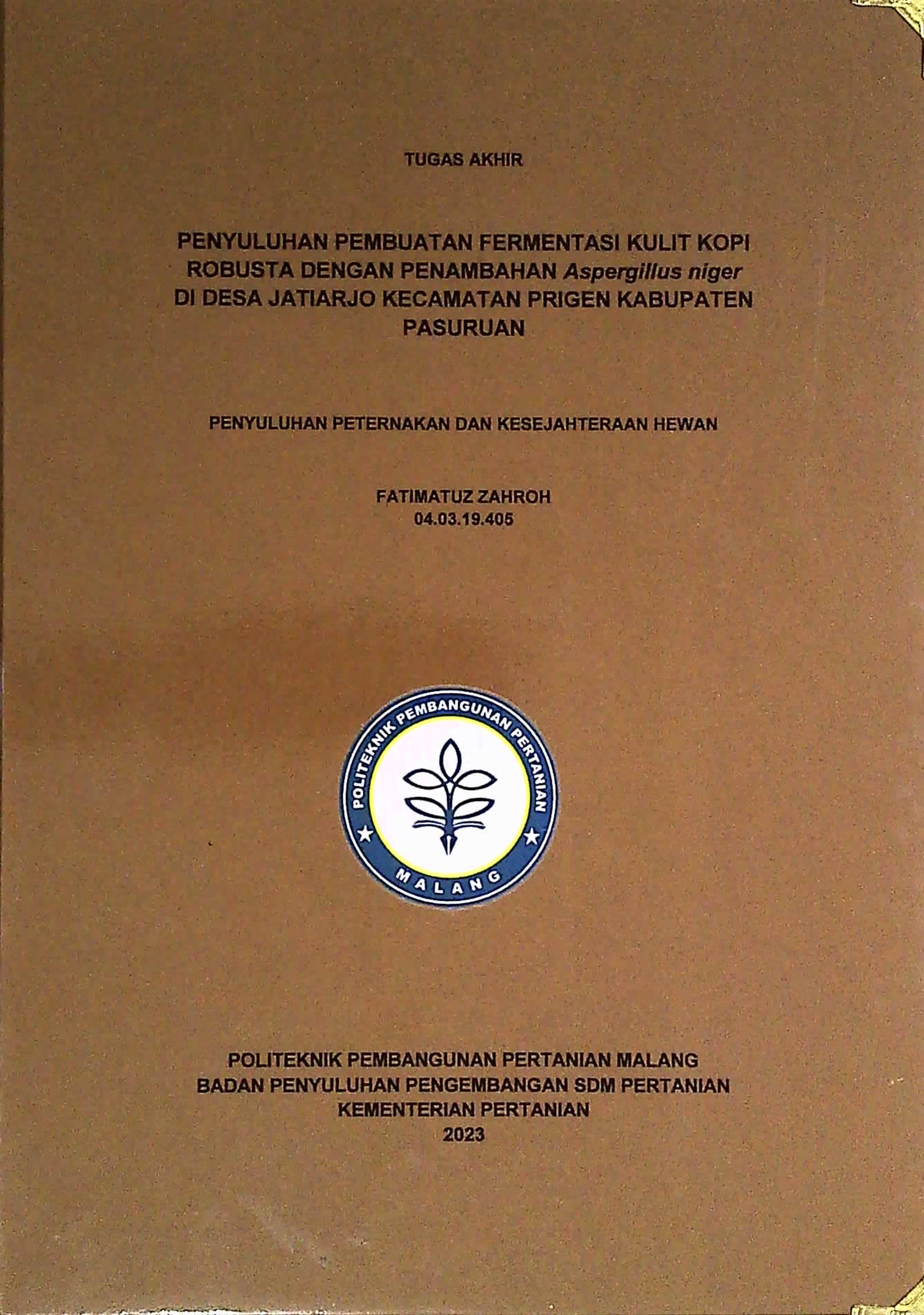 Judul | PENYULUHAN PEMBUATAN FERMENTASI KULIT KOPI ROBUSTA DENGAN PENAMBAHAN Aspergillus niger DI DESA JATIARJO KECAMATAN PRIGEN KABUPATEN PASURUAN / Polbangtan Malang |
