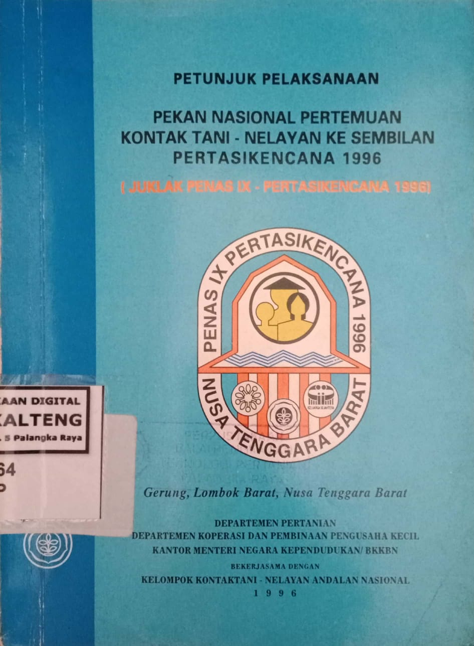 Judul | Petunjuk Pelaksanan : Pekan Nasional Pertemuan Kontak Tani-Nelayan Ke Sembilan Pertasikkencana 1996 (Juklak Penas IX - Pertasikencana 1996) / Panitia Penyelenggara Pusat |