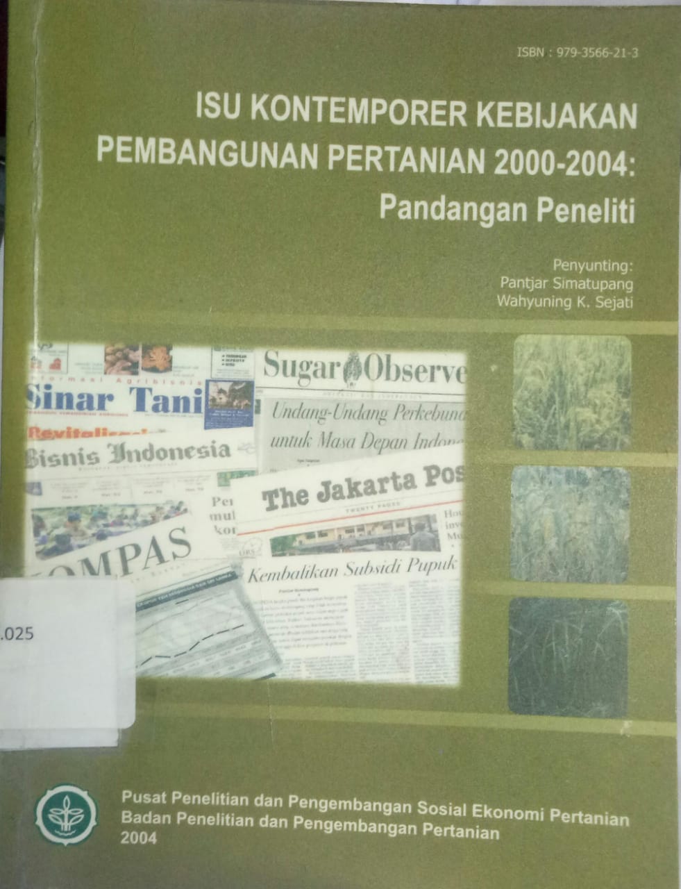 | Judul | Isu kontemporer kebijakan pembangunan pertanian 2000-2004 : Pandangan peneliti / Pantjar Simatupang |
