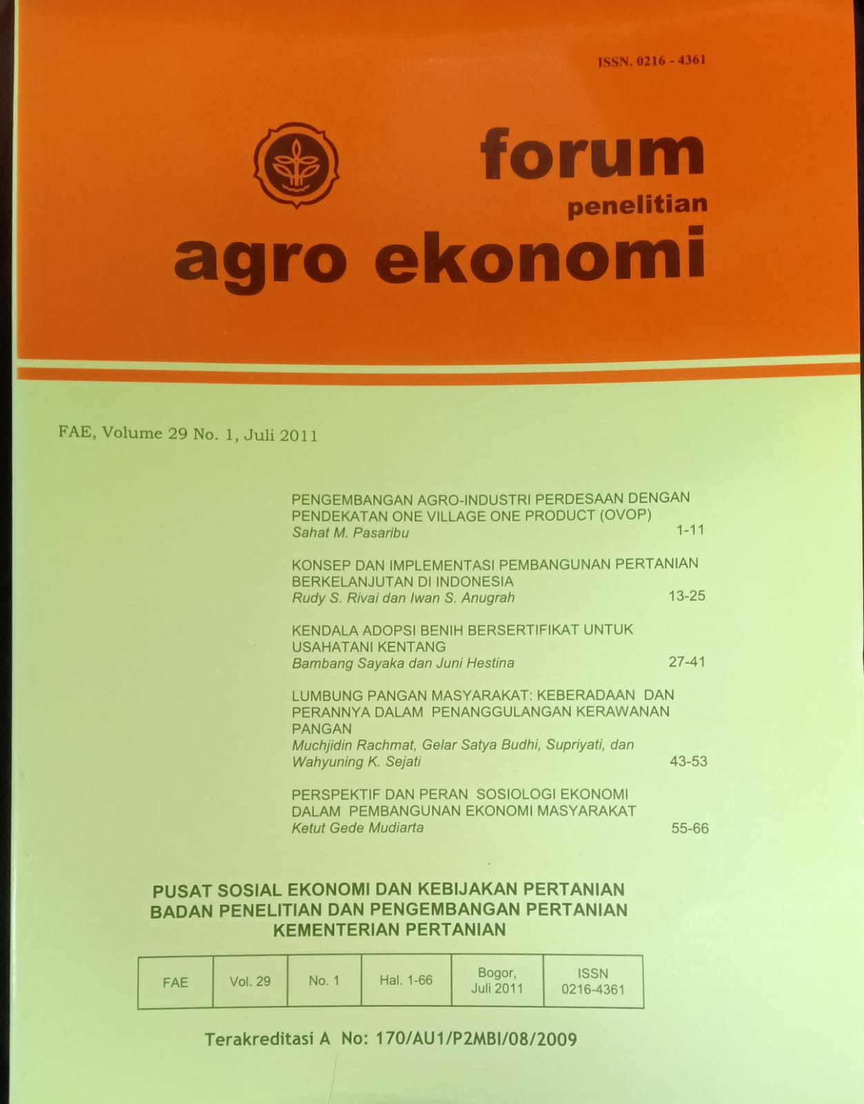 | Judul | Forum Penelitian Agro Ekonomi Volume 29 Nomor 1, Juli 2011 / Kepala Pusat Sosial Ekonomi dan Kebijakan Pertanian Badan Penelitian dan Pengembangan Pertanian |