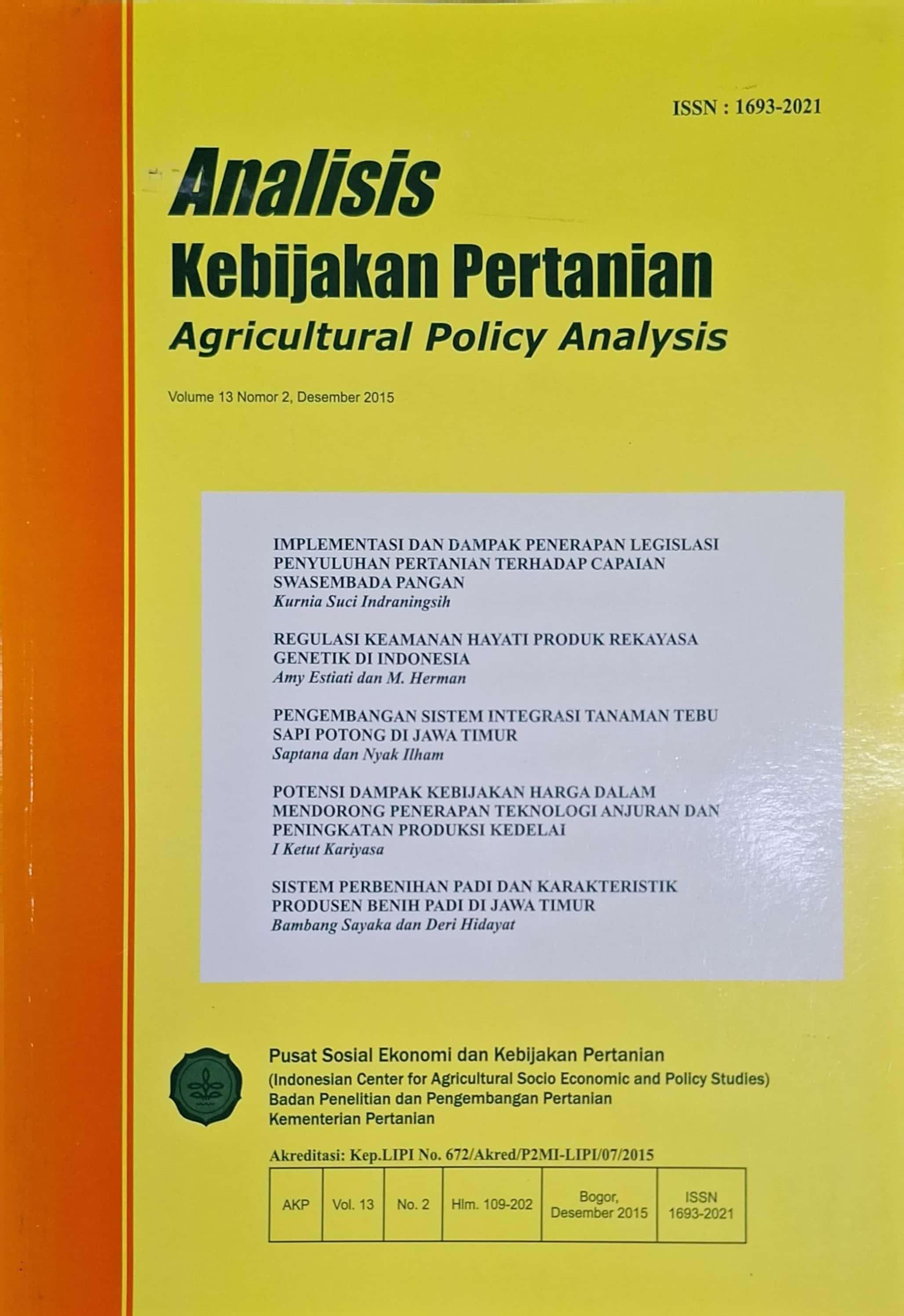| Judul | Analisis Kebijakan Pertanian Volume 13 Nomor 2, Desember 2015 : Agricultural Policy Analysis / Bambang Sayaka |