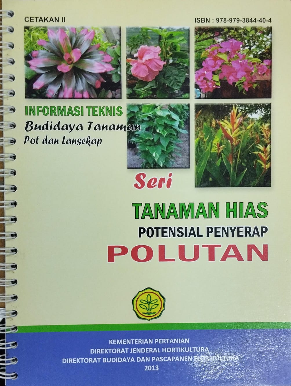 Sehubungan dengan hal tersebut, dikenalkan beberapa jenis tanaman hias yang berfungsi untuk keindahan dan berpotensi sebagai penyerap polutan yang dikemas dalam Buku Informasi Teknis Budidaya Tanaman Hias Pot dan Lansekap Seri Jenis-jenis Tanaman Hias Potensial Penyerap Polutan. Buku ini menginformasikan 27 jenis tanaman hias pot dan lansekap yang berfungsi untuk keindahan dan bermanfaat untuk menyerap polutan
