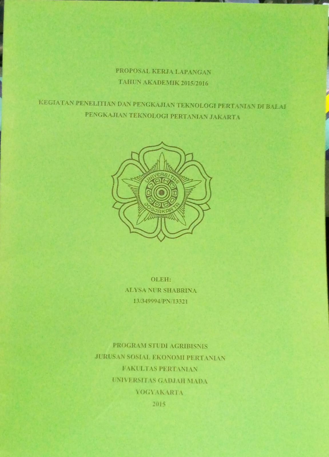 | Penerbitan | Yogyakarta : Alysa Nur Shabrina, 2015 |