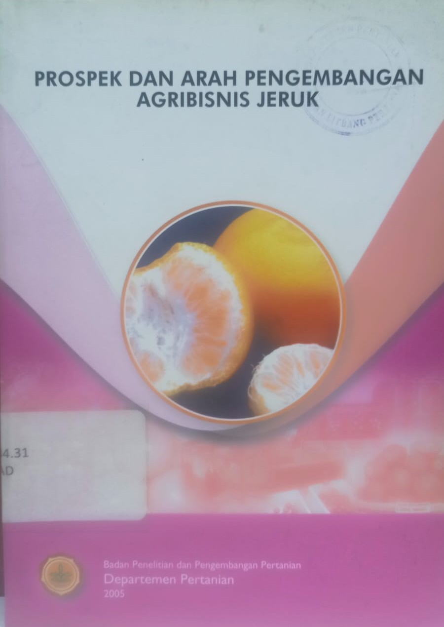 Abstrak Penulisan Prospek dan Arah Pengembangan Komoditas Jeruk 2010 ini dimaksudkan untuk memberikan gambaran tentang: (1) kondisi agribisnis saat kini, (2) prospek, potensi dan arah pengembangan, (3) strategi, kebijakan dan program; dan (4) peluang investasi pengembangan serta alternatif kebijakan pendukung. Informasi dalam buku ini dihimpun dari berbagai sumber antara lain Direktorat Jenderal Bina Produksi Hortikultura, Badan Pusat Statistik (BPS), Food and Agriculture Organization (FAO), serta berbagai hasil penelitian lingkup Badan Litbang Pertanian.