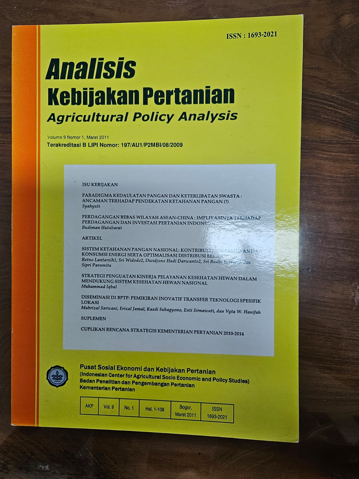 | Penerbitan | Bogor : Pusat Sosial Ekonomi dan Kebijakan Pertanian, 2011 |