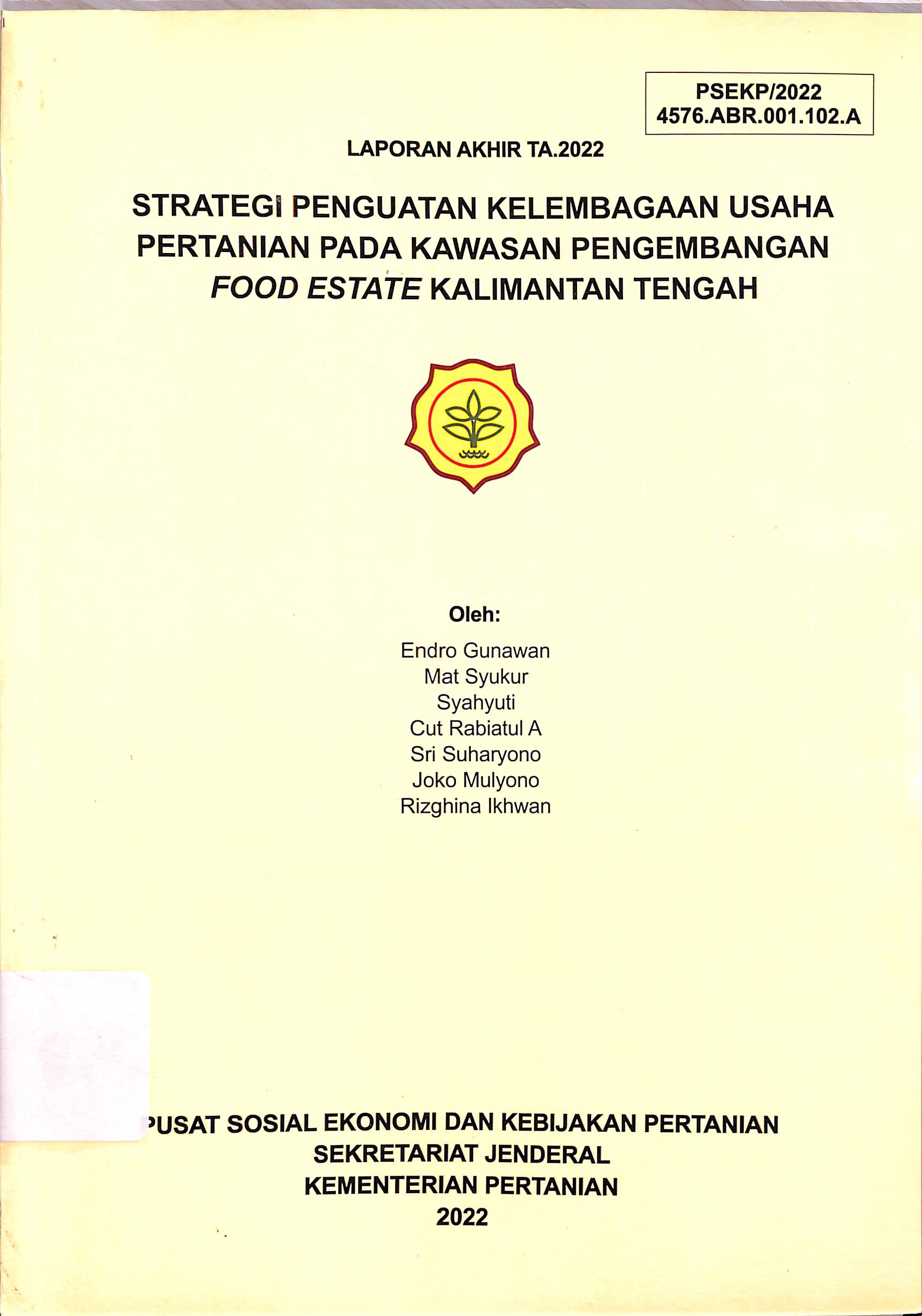 | Judul | Strategi Penguatan Kelembagaan Usaha Pertanian pada Kawasan Pengembangan Food Estate Kalimantan Tengah |