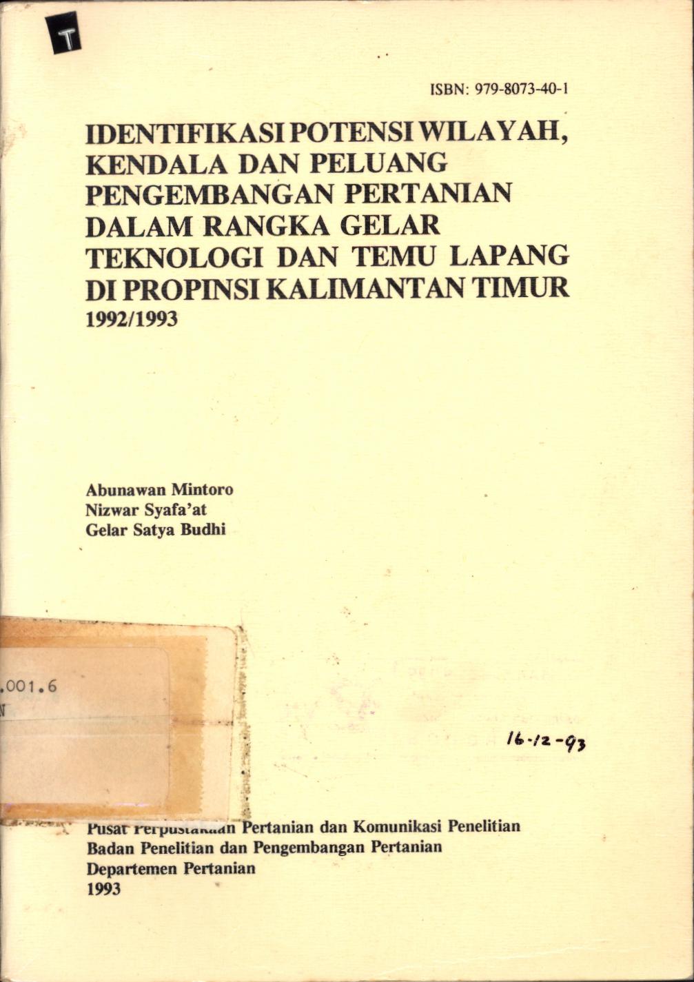 | Judul | Identifikasi potensi wilayah, kendala dan peluang pengembangan pertanian dalam rangka gelar teknologi dan temu lapang di propinsi Kalimantan Timur 1992/1993 |