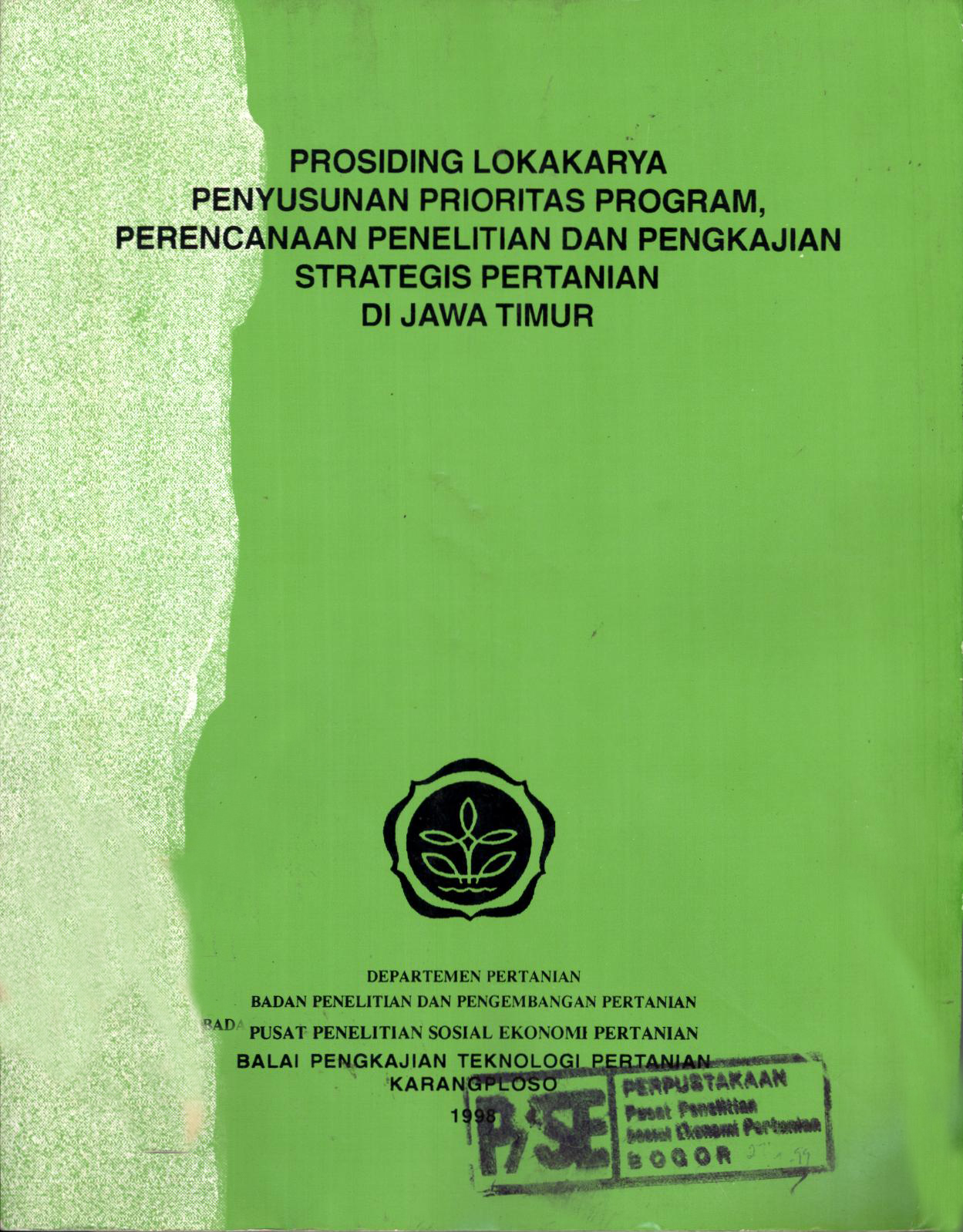 | Judul | Prosiding Lokakarya Penyusunan Prioritas Program, Perencanaan Penelitian dan Pengkajian strategies Pertanian di Jawa Timur |