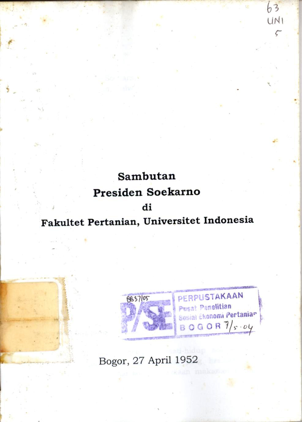 | Judul | Sambutan Presiden Soekarno di Fakultet Pertanian, Universitet Indonesia |