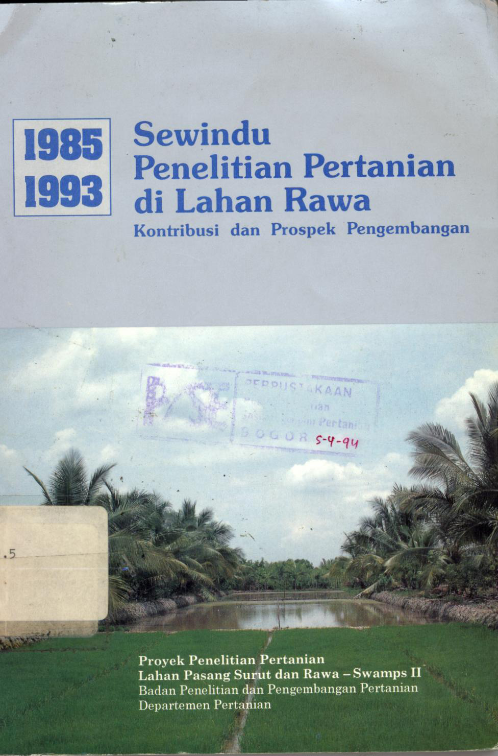 | Judul | Sewindu Penelitian pertaian di lahan rawa : Konstribusi dan prospek pengembangan 1985 - 1993 |